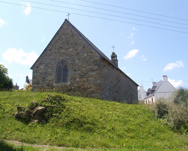 Chapelle à vaisseau unique construite en moellons de granite et schiste. Le mur-pignon ouest, couronné d'un clocher rapporté, et l'élévation nord sont aveugles. Le chevet plat est ajouré d'une baie axiale à remplage de pierre et à arcature trilobées. L'élévation sud est ouverte d'une porte en plein-cintre, d'une petite baie à gauche et d'une fenêtre en plein-cintre à droite, près d'un contrefort.