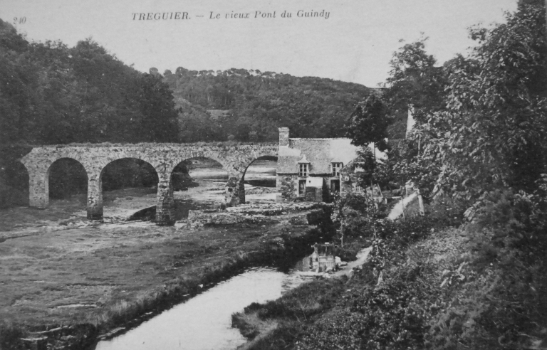 Le bassin du Jaudy a compté jusqu'à 157 moulins sous l'Ancien Régime. Les usages de ces moulins étaient variés : outre la mouture, citons : le teillage du lin et du chanvre, le sciage du bois, le tannage et plus tard la production électrique. Selon Jollivet, en 1859, il existait encore 8 moulins sur la commune de Plouguiel, dont un seul moulin à vent (la Montagne). L'auteur cite les moulins à eau d'Arère (orthographié 'Arreré'), le moulin Yvon, le moulin de Lizhildry, le moulin de Luzuron, milin Greis, le moulin de Keralio, et celui de Kerouzy. Ces moulins sont certainement antérieurs au 19ème siècle. Ils sont tous indiqués sur le cadastre napoléonien de 1834. Les moulins suivants ont été repérés sur la commune de Plouguiel : - En remontant le cours d'eau du Lizildry, le moulin de Prébauté (disparu), - Le moulin d'Arère : très remanié, il a perdu son mécanisme, seule la maison du meunier existe encore, entièrement rénovée et transformée. L'ensemble du site a été reconverti en atelier ostréicole. - Le moulin Yvon : il ne reste que les ruines de l'habitation du meunier. Le moulin à eau de Kerouzy, parcelles C 878-879 (ancien teillage de lin) a cessé de fonctionner en 1952. En suivant le cours du Guindy, sur la rive droite du Guindy, on peut remarquer : le moulin de l'Evêque et le moulin du Pont (C 882-884), dont le dernier meunier s'appelait Le Corre, le moulin de Keraliou et le moulin de Troguindy. - le moulin à vent, appelé 'moulin de la Montagne', situé près d'un manoir, avec son pigeonnier, a disparu.