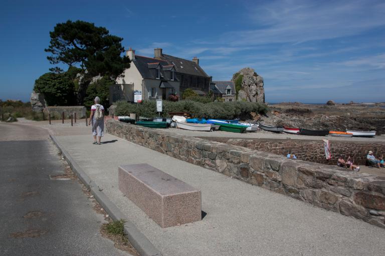 On remarque que la micro-falaise limoneuse de Pors Hir subit une forte érosion et un recul de plusieurs mètres, malgré les enrochements. Un petit parking est situé en retrait de la voie communale qui passe devant Pors Hir et la digue. De nouveaux aménagements portuaires ont été réalisés en front de port (nouveau mobilier portuaire, parking, etc.).