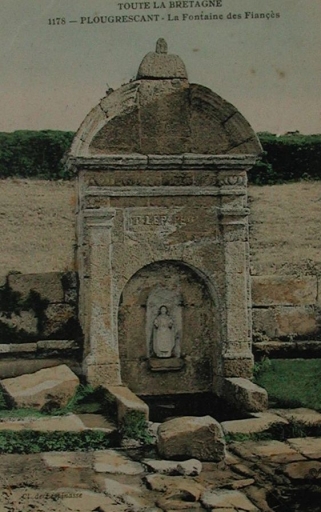 La datation des fontaines et des puits repérés sur la commune de Plougrescant est comprise entre le 3ème quart du 17ème siècle (fontaine Saint-Gonéri, 1687, classée MH) et le 4ème quart du 19ème siècle. Cependant, il est difficile de dater précisément certians édicules, dont les lavoirs, qui ont tous été recouverts de ciment. En 1999, 14 fontaines ont été recensés par Claude Berger (ARSSAT), dont 14 édifices à ciel ouvert et 10 à bassin couvert. Lors de notre enquête, neuf fontaines, huit lavoirs et un routoir ont été repérés et étudiés sur la commune de Plougrescant, ainsi que trois puits. Certaines de ces fontaines ont peut-être été associées à des pratiques votives et à des croyances païennes. La fontaine de Saint-Gonéri et la fontaine de Crec'h Run sont des fontaines à croyances et la fontaine de Kéralio, une fontaine à dévotion. Plusieurs fontaines et lavoirs ont disparu ou sont à retrouver dans les talus (envahis par la végétation), comme le lavoir de Nisquit. L'unique routoir repéré sur la commune (Feunteun Wenn), est à signaler en particulier ainsi que la fontaine de Saint-Gonéri. Ces petits édifices sont à signaler dans le cadre du circuit de découverte des édicules liés à l'eau sur la commune. A l'initiative de Jean-Pierre Nail, une partie des membres du club des retraités de la commune a travaillé à la réhabilitation des lavoirs et des fontaines, défrichées par la commune. Dix lavoirs parmi la vingtaine répertoriée sur la commune ont été reliés par un circuit d'une douzaine de kilomètres : Prat Glaz, Ralévy, Rojo Gwenn, Poul Stripo, Prat Min, Nisquit, Tourot, Crec'h Run, Kerogan, et Goas Caradec. L'itinéraire recoupe des chemins existants qui se dirigent vers le bourg. On s'est rappelé les noms des lavandières professionnelles qui passaient chercher le linge dans les maisons juste avant guerre : Marie Herlidou du calvaire, Marie-Job Savidan des Quatre-Vents, Maria Cotter, Joséphine Gerlesquin. On venait avec la lessiveuse de linge bouilli sur la brouette. La meilleur place était dans un coin. Puis on mettait le linge à sécher sur les ajoncs, se rappelle Jeannine Lanthoën.