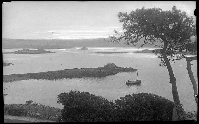 Les îles ont représenté les premières occupations du littoral par les populations venues d'outre Manche, en particulier les moines évangélisateurs dés le 6ème siècle. Elles ont conservé de nombreux témoignages matériels de cette colonisation pacifique, qui s'est renouvelée par la présence souvent discontinue des ordres monastiques entre l'île Saint-Gildas et le Port-Blanc (chapelles, ex-voto marins). Les fontaines, les puits et les lavoirs traduisent aussi le culte de l'eau. Les moulins à marée (Buguélès et Pellinec) rappellent l'importance des marées meunières. La datation des oeuvres repérées et étudiées pour le patrimoine maritime de cette commune est comprise entre la période antique (pêcheries), le 15ème siècle (chapelle Saint-Gildas), le 17ème siècle (moulin du Guermeur), le 18ème siècle (ensemble fortifié du Port-Blanc), le 19ème siècle (3 ex-voto marins, le moulin à marée de Buguélès, les fontaines, puits et lavoirs) et le 2ème quart du 20ème siècle (5 bateaux de plaisance).