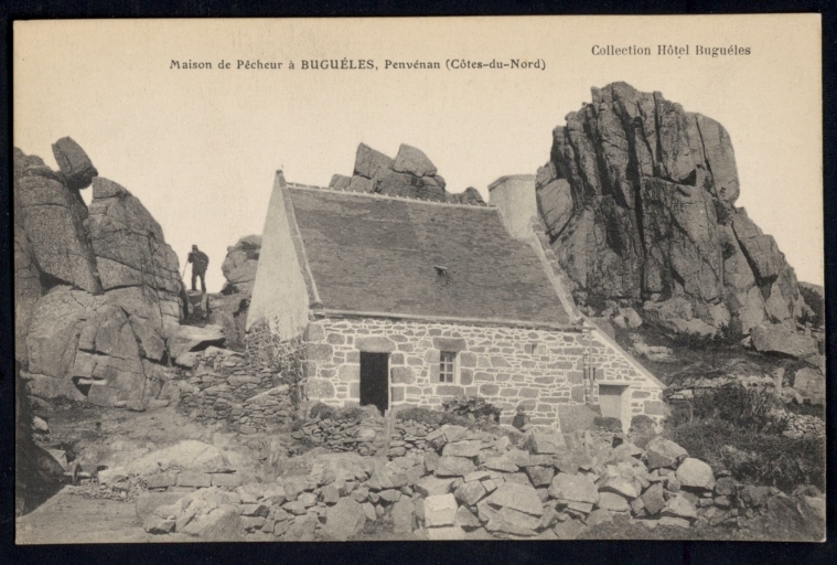 La datation des oeuvres repérées est comprise le 15ème siècle et le 1er quart du 21ème siècle. 434 oeuvres ont fait l'objet d'un repérage, parmi lesquelles 23 ont été proposées à la sélection en vue d'une étude ultérieure : - le manoir de Guernaultier [fig. 11] ; - le manoir de Kerpeulven, classé monument historique [fig. 12] ; - le manoir de Kermarquer [fig. 13] ; - une ferme au lieu-dit Kerbriand [fig. 14] ; - une ferme au lieu-dit Kerdéval [fig. 15] ; - une ferme au lieu-dit Kerelguen [fig. 16] ; - le manoir de Pen-Crec'h [fig. 17] ; - le manoir du Guermeur [fig. 18] ; - une ferme au lieu-dit Crec'h-an-Bec [fig. 19] ; - une ferme au lieu-dit Convenant-Chapel [fig. 20] ; - une maison au lieu-dit Keranscoualc'h [fig. 21] ; - une ferme au lieu-dit Poulpry [fig. 22] ; - une maison au lieu-dit Crec'h-al-Lann [fig. 23] ; - une maison au lieu-dit Tossen-Sec'h [fig. 24] ; - une ferme au lieu-dit Crec'h-André [fig. 25] ; - une ferme au lieu-dit Croaz-Cornadou [fig. 26] ; - une maison au lieu-dit Buguélès [fig. 27] ; - une maison de villégiature au lieu-dit Crec'h-ar-Bleïz [fig. 28] ; - une maison au lieu-dit Goas-Poulou [fig. 29] ; - plusieurs maisons au Port-Blanc [fig. 30-33] ; Les dates de construction relevées sur le terrain (30) ou attribuées d'après information orale (2) sont les suivantes : 1695, 1698, 1714, 1768, 1772, 1773, 1810, 1813, 1821, 1823, 1829, 1834, 1839, 1841, 1843, 1852, 1854, 1862, 1875, 1894, 1902, 1903, 1904, 1905, 1906, 1910, 1911, 1912, 1938, 1954, 1956, 2002. Les noms d'auteur et de propriétaire attribués par source, par signature ou par travaux historiques sont : James Bouillé (architecte), l'Amiral de Cuverville (propriétaire), Anatole Le Braz (personnage célèbre) et Augustin Hamon (propriétaire).