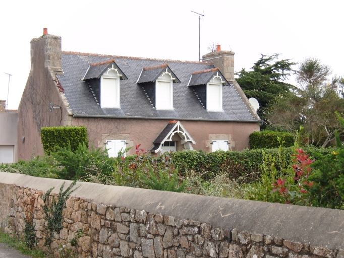 Maison de plan rectangulaire, à deux pièces au rez-de-chaussée et à accès antérieur central, construite en moellons de granite couverts d'enduit. Elle est couverte d'un toit à longs pans et pignons découverts. Éléments de décor : menuiserie (fermettes débordantes).