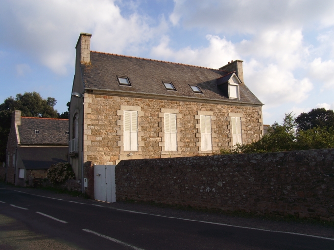 Maison haute de plan rectangulaire, à quatre travées de baies régulières en façade antérieure, et mur de clôture chaperonné construits en moellons de granite. L'encadrement des baies et les chaînes d'angles sont en pierre de taille. La façade antérieure est ouverte à l'étage de haute fenêtres rectangulaires verticales.
