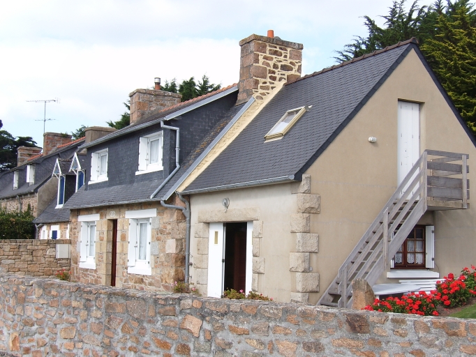 Maison mitoyenne de plan rectangulaire, à deux pièces au rez-de-chaussée et à accès antérieur central, construite en moellons de granite. Le linteau de l'entrée porte le millésime 1875.