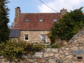 Maison mitoyenne de plan rectangulaire, à deux pièces au rez-de-chaussée et à deux portes jumelées en façade, construite en moellons de granite.