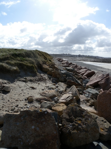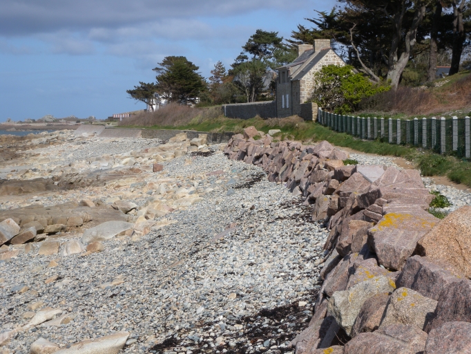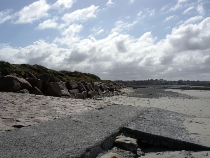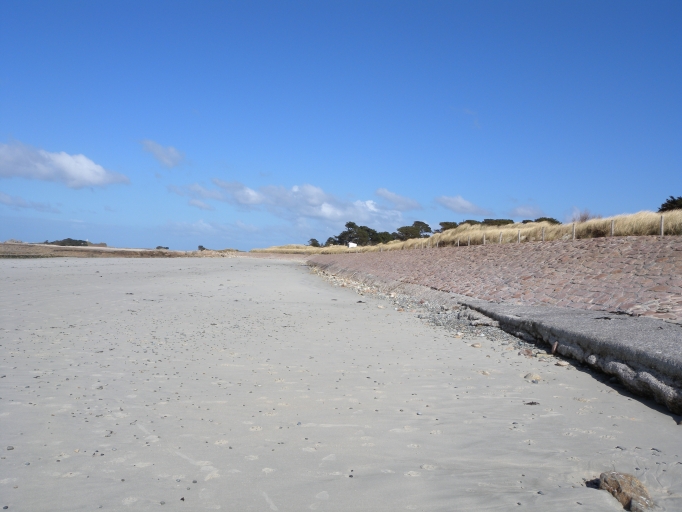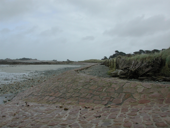 La digue des Dunes a été édifiée dans le 3ème quart du 20ème siècle (1978) de façon irriégulière entre Crec'h Avel et le Port-Blanc, afin de pprotéger le cordon dunaire et les zones humides du Launay.