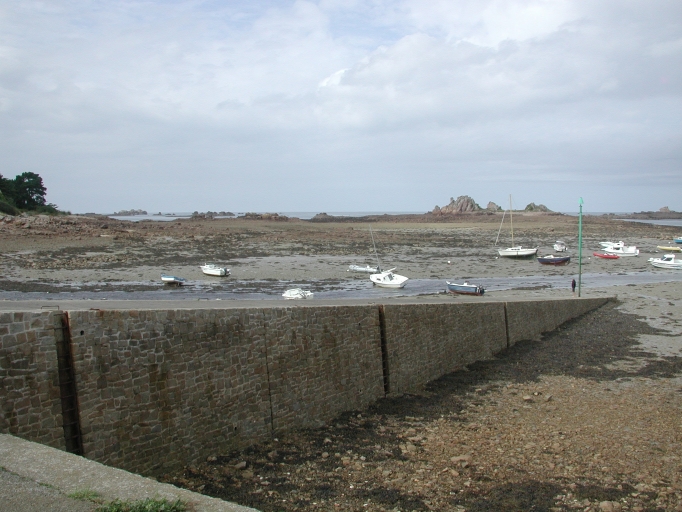 L'anse de Gouermel est séparée de l'anse de Pellinec par la pointe de Buguéles. Au Sud-Ouest de cette anse, se trouve l'anse des Roches Noires qui est à terre des îles aux Lierres et de Kergonet. Le port de Buguélès est une presqu'île au Sud de l'île des Genêts et de l'île Ozac'h, que contourne une chaussée construite dans les années 1970. Le chenal qui conduit au Couriaut est profond jusqu'à l'île Nini ou Illiéoc (Thomassin, 1875, p. 304). Il assèche ensuite. Le port est situé à l'extrémité de l'ancienne île Bilo, protégé de la houle de Nord-Ouest par l'île Ozac'h et son cordon de galets. La cale du port mesure environ une cinquantaine de mètres de longueur et 4, 50 mètres de largeur. Elle est insubmersible et permet l'accostage des bateaux dès la mi-marée. Une plateforme prolonge la cale et sert de terre-plein et de parking. Le port de Buguélès dispose de 140 places pour la plaisance dont 3 bouées visiteurs. Les services suivants : eau, électricité et commerces sont à proximité.
