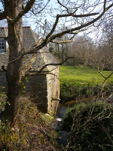 L'ensemble des bâtiments est situé en contre-bas de la route, le long d'un talus. Le bâtiment principal a un plan en équerre, avec logis, crèches et moulin, avec un étage sous combles (fig. n° 1 et 2). Le pignon où se trouvait le mécanisme est en très grand appareil et la maison d'habitation en petit appareil très irrégulier. Ce pignon est doté de contreforts. Toutes les ouvertures sont en pierres de taille de granite et la maçonnerie en moellons de granite. Il ne reste plus trace du mécanisme, sauf une souche de pierre dépassant du pignon et l'ouverture où passait l'arbre de couche sur ce même pignon au-dessus du ruisseau. On peut cependant remarquer le circuit de l'eau et l'étang de grande superficie servant de bief. Sur la gauche du canal, on peut remarquer un barrage réservoir, dont la crête en pierres de taille mesure une longueur d'un mètre. L'étang autrefois très vaste a été réduit en 1877. Il reçoit les eaux d'un ruisseau qui se jette dans la baie de l'Enfer, à l'embouchure de la rivière de Tréguier.