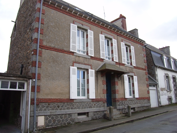 Maison de type ternaire édifiée en moellons de granite et schiste couverts d'enduit en façade antérieure. Elle est composée d'un sous-sol, d'un rez-de-chaussée surélevé, d'un étage carré et d'un étage de comble (remaniement). L'encadrement des baies et les chaînes d'angles alternent régulièrement brique rouge et granite à ton clair. L'entrée est protégée par un auvent. Éléments de décor : moellons polygonaux, brique (bandeaux, souches de cheminée, entourage des baies, chaînes d'angles), pierre de taille (entourage des baies, chaînes d'angles).