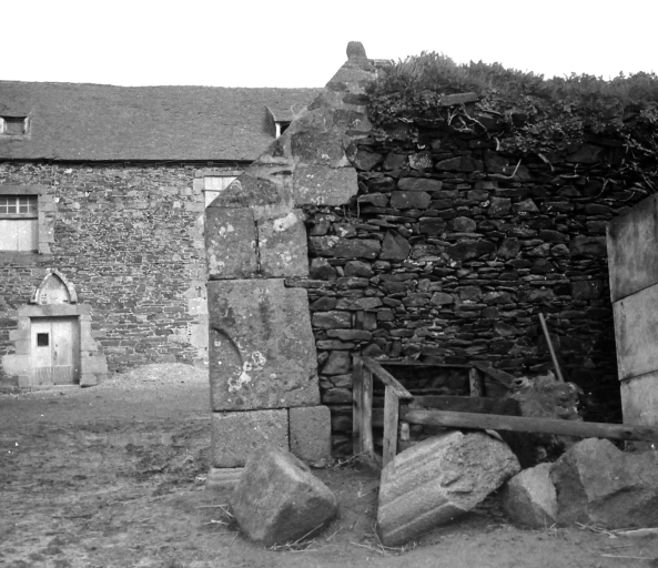 Manoir à cour fermée dont les bâtiments sont construits en moellons de granite et schiste. Aspecté au sud, le logis de plan rectangulaire est probabalement un logis de type ternaire remanié. Il présente à gauche un bâtiment en retour d'équerre coiffé d'un toit en pavillon sommé de deux épis de faîtage en terre cuite vernissée. L'entrée de la cour est matérialisée par un portail à porte piétonnière et à porte charretière surmontées chacune d'une archivolte à retours avec bas-relief en mauvais état placé au-dessus de la porte piétonnière, figurant probablement deux lions portant un écu blasonné timbré d'un heaume.