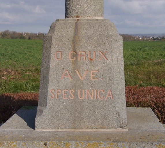 Croix de chemin du sculpteur Yves Hernot (signature) érigée en 1886 (date portée) pour Jacques Duchene (inscription).