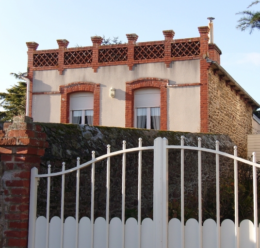 Maison de plan rectangulaire en rez-de-chaussée construite en moellons de granite et schiste. Éléments de décor : brique (encadrement des baies, garde-corps).