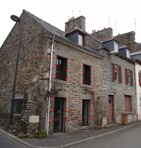 Maison haute mitoyenne, à accès antérieur latéral, construite en moellons de granite et schiste.