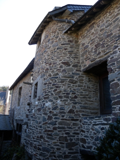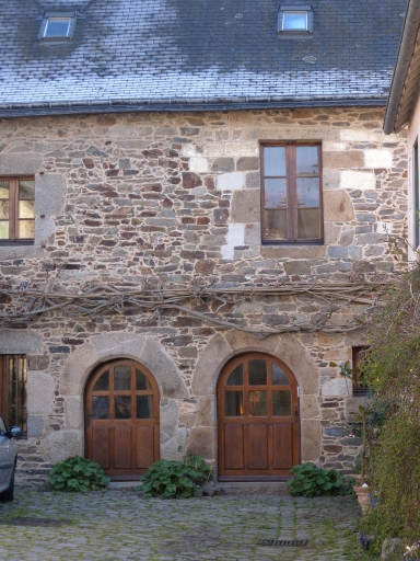 Maison haute de plan rectangulaire, à deux pièces au rez-de-chaussée et à deux portes jumelées en façade, construite en moellons de granite et schiste. Elle est couverte d'un toit à longs pans à égout retroussé. Les portes d'entrée sont en plein-cintre. Descriptif complémentaire comme suite à la visite de Guy Prigent : maison haute, de plan rectangulaire avec un rez-de-chaussée, un étage carré et une étage de comble. Les étages sont accessibles par un escalier à vis, qui circule dans une tour en partie extérieure, donnant sur la façade Nord et une petite cour fermée. La construction est édifiée avec une maçonnerie en moellons de schiste. Les ouvertures, dont les deux portes jumelles en plein-cintre présentent des encadrements en pierre de taille (granite). L'habitation comprend deux pièces au rez-de chaussée, séparées par un mur de refend.