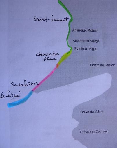 Le 'chemin du Phare' longeait la voie ferrée et passait en haut du sentier à l'angle de la propriété Guinard. Le chemin rejoint toujours le phare et offre une belle promenade et un joli point de vue sur l'embouchure du Légué et la baie de St-Brieuc. Il est bordé de maisons, dont certaines inspirées par l'architecture balnéaire, en vogue, au début du 20ème siècle. Cependant, ces maisons adossées à la falaise, sont exposées à la circulation des eaux pluviales qui suintent de la falaise.
