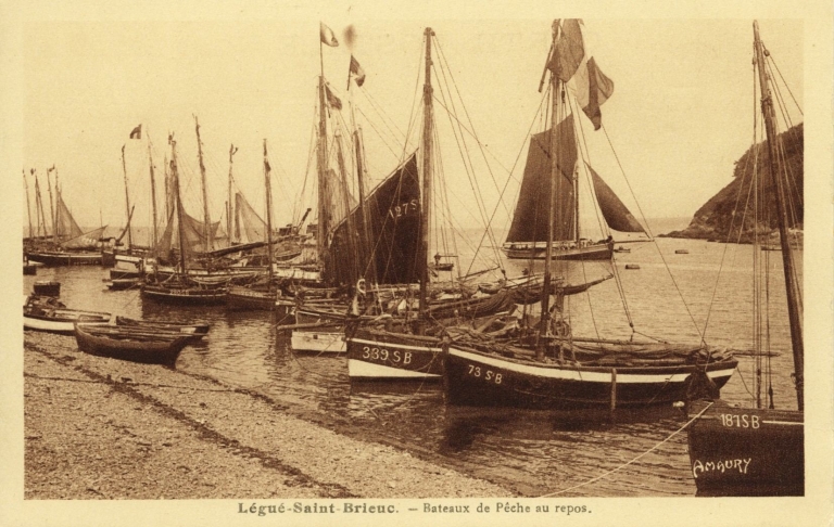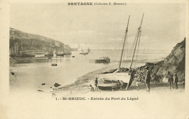 Le port du Légué était un port à échouage jusqu'au milieu du 19ème siècle. Les bateaux, armés au cabotage, faisaient leur souille au niveau de l'actuelle place de la Résistance, devant les habitations, alors que les bateaux de pêche restaient dans l'avant-port, sur le banc de sable ou à l'accore de la 'rivière'. Le pont de bois comprenait une partie mobile pour permettre aux navires de grande pêche de remonter à 'Port Favigo' et même jusqu'au pont du Gouët, limite naturelle du port. A l'emplacement du terre-plein de la Ville-Gillette, les quais étaient réservés au caboteurs et sabliers de la TIMAC, qui venaient livrer sable et maërl (1950-1960). Un cimetière à bateaux trouvait sa place en amont au bout des quais. Le port de pêche s'est établi au cours du 20ème siècle au niveau de l'avant-port (sous-la-Tour) et de la cale de la Douane, plus proche de l'embouchure du Légué.