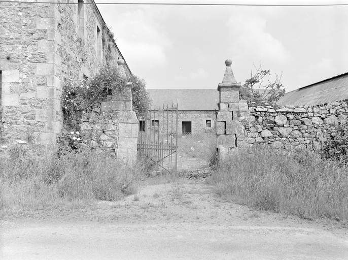 Ancienne ferme à cour fermée dont le mur de clôture chaperonné situé à l'aplomb de la rue, le logis et les dépendances sont construits en moellons de granite et schiste. La cour est ouverte à l'ouest d'un portail à porte cochère sans couvrement dont les piliers sont amortis d'un pyramidion sommé d'une boule. Flanqué à gauche d'une aile rapportée de même hauteur, le logis est un logis de type ternaire à baies surnuméraires latérales en façade antérieure dont l'entrée est agrémentée d'une traverse d'imposte. Les fenêtres du rez-de-chaussée sont barreaudées. L'aile qui prolonge le logis à gauche est couverte d'une croupe, le mur de croupe portant à l'origine une souche de cheminée.