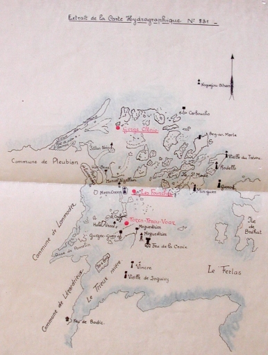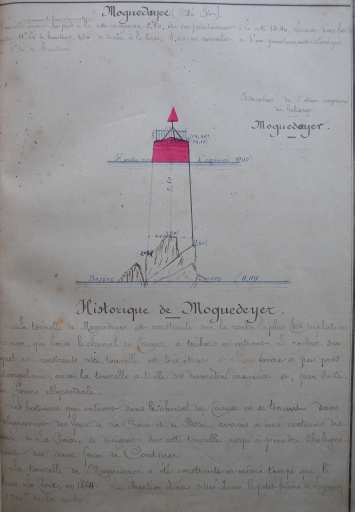 Sept balises ont été repérées sur le Domaine Public Maritime de Lanmodez entre la baie de Pommelin et l'entrée du chenal de Lanneros. Le balisage formé de tourelles maçonnées a été réalisé en 1864 dans le grand chenal du Trieux jusqu'à la baie de Lanneros. Le balisage constitué de perches en bois a été réalisé en 1904. La tourelle de Moguedhyer a été détruite par des tempêtes successives au cours du 4ème quart du 20ème siècle. Elle n'a pas été restaurée et a été remplacée par une perche. La tourelle de Men Grenn, édifiée en 1896 a été électrifiée au cours du second quart du 20ème siècle. Cette tourelle a été étudiée. Le balisage suivant a été repéré : les tourelles de Moguedhyer, de Men Grenn, la Vieille du Tréou, Rodello et Min Guen Kerannets ; les trois perches de Guazec Guen, Moguedhyer et Hole Vras.
