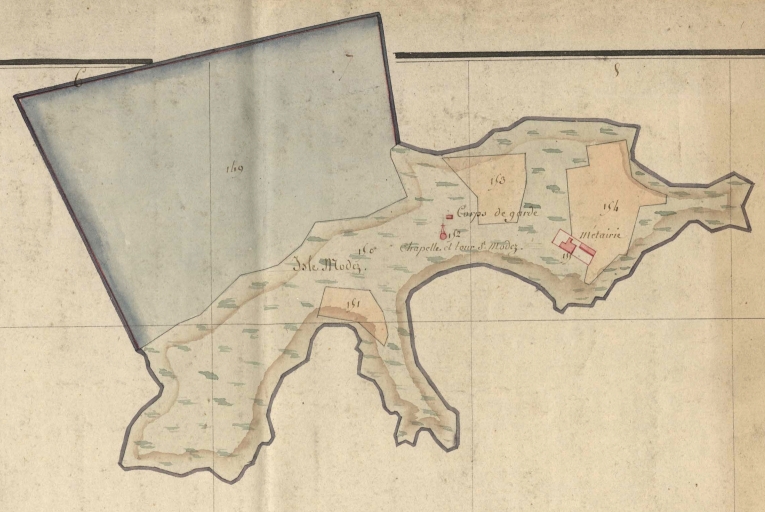 Démembrement de la paroisse bretonne primitive de Pleubian, Lanmodez est une ancienne paroisse relevant de l'évêché de Dol. Citée sous la forme Landa Maudeti à la fin du XIème siècle, elle est attestée comme paroisse pour la première fois vers 1330. Son nom est formé avec le vieux breton Lann, ermitage, et le nom de saint Maudez, moine breton dont la IIe Vie rapporte, qu'en provenance d'Irlande, il aurait fini par s'établir sur l'île de Gueldenes, l'île Modez, devenue siège d'un prieuré de l'abbaye de Bégard au XIIème siècle [fig. 10]. Lanmodez a élu sa municipalité au début de l'année 1790.