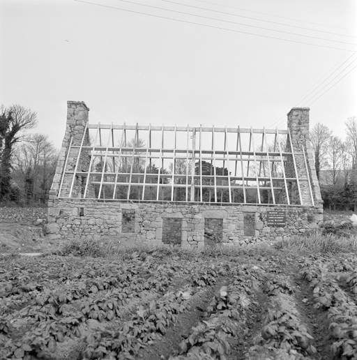 Maison de plan rectangulaire, de type logis double ou logis jumelés, et dépendances latérales basses construites en moellons de granite et schiste. Elle est couverte d'un toit à longs pans et pignons découverts à rampants à crossettes. Chaque logis, de taille quasiment identique, possède sa propre entrée, les deux portes au centre de la façade antérieure étant jumelées. La porte d'entrée de gauche est couverte d'un linteau portant le millésime 1830. La façade antérieure est animée par une petite surnuméraire latérale (à gauche).