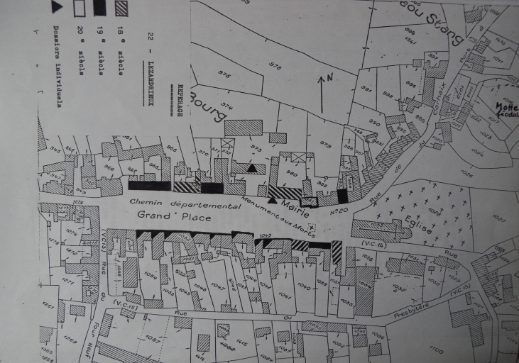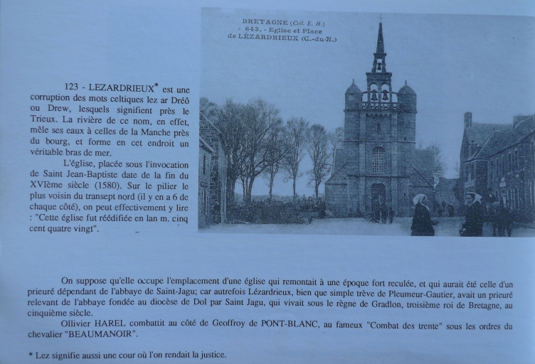 Comme l'atteste le toponyme formé d'après Bernard Tanguy avec le vieux-breton les (château, cour), la préposition ar (près de) et le nom du Trieux, dreñv en breton, Lézardrieux doit son nom à la présence d'un château établi dès le haut Moyen Age sur les hauteurs dominant le Trieux. C'est à l'emplacement de ce château primitif que succéda à l'époque féodale une motte castrale dont il subsiste le souvenir au nord-est de l'église, à travers le lieu-dit le Vieux Château et le parcellaire tant de l'ancien cadastre que du cadastre moderne [doc. 3 ; fig. 1]. Les seigneurs de ce château n'apparaissent dans la documentation qu'à partir du XIIIème siècle : Gaultier de Leshardre fit ainsi un don aux moines de Léhon en 1225, tandis que Alain de Leshardre fut évêque de Tréguier de 1262 à 1275.