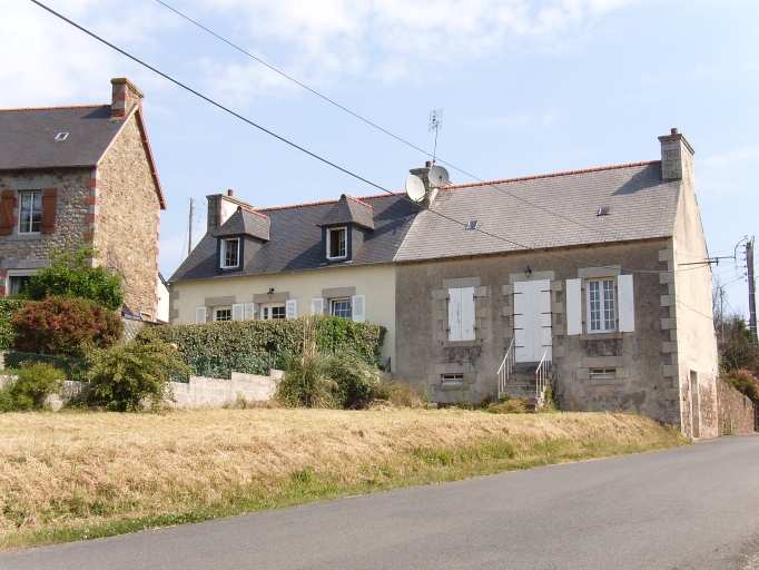 Maison mitoyenne de plan rectangulaire et à accès antérieur central composée d'un sous-sol semi-enterré, d'un rez-de-chaussée surélevé à deux pièces et d'un étage de comble.