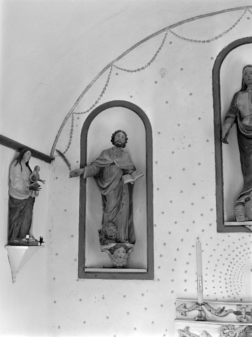 Chapelle de plan rectangulaire massé, à vaisseau unique et à mur-pignon ouest couronné d'un clocher en maçonnerie, construite en moellons de granite et schiste. Elle présente un chevet plat aveugle, tandis que l'élévation sud est ouverte d'une baie à remplage de pierre. Une pierre de la chaîne d'angle antérieure droite ou sud-ouest porte l'inscription H. LE GONIDEC COVERNEUR DE CEANS A FAIT FAIRE CESTE CHAPELLE EN L AN 1595. Les deux fontaines de dévotion, l'une au sud (Saint-Antoine), l'autre à l'ouest de la chapelle (Notre-Dame), sont des fontaines à bassin carré, à murets latéraux et pignon ouvert en plein-cintre. Chaque pignon est évidé d'une niche à statue, la niche de la fontaine Saint-Antoine étant agrémentée d'une coquille Saint-Jacques. L'eau de chaque bassin s'écoule par un petit canal interrompu par un bassin secondaire aménagé pour les ablutions.