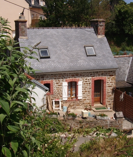 Maison de plan rectangulaire, à pièce unique au rez-de-chaussée et à accès antérieur latéral, construite en moellons de granite et schiste. L'encadrement des baies de la façade antérieure, y compris la petite baie surnuméraire latérale, sont construits en brique.