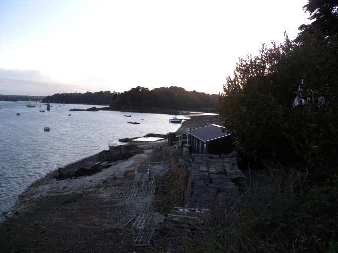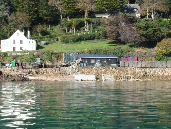 Jusqu'au 4ème quart du 20ème siècle : installations à terre : hangars et maisons d'habitations au bord de l'estuaire, parcs à huîtres sur l'estran. Les parcs sont aujourd'hui situés en aval de l'estuaire, au Sud-Ouest de l'Île à Bois et en amont, dans le Lédano. Les seules installations à terre concernent un hangar à la Pointe de l'Armor (anciens bâtiments Mahéo) et au lieu dit 'Le Passage' à Pleudaniel..