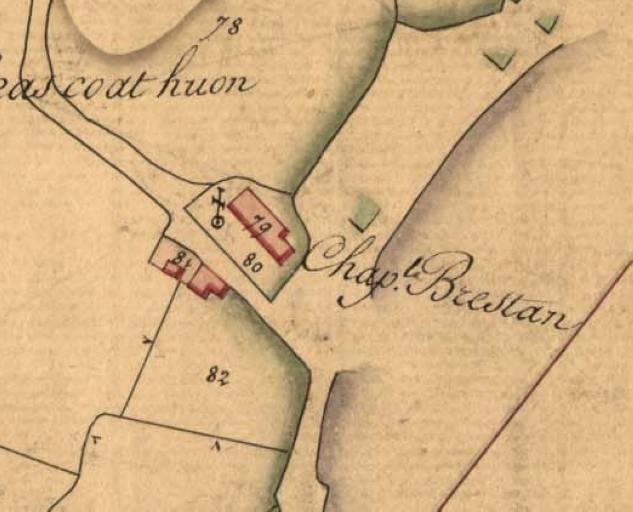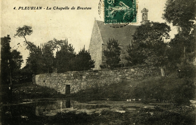 La chapelle de Brestan est un édifice du 3ème quart du 17ème siècle (1652, date portée) reconstruit au cours du 3ème quart du 18ème siècle (1769, date portée) par le maître maçon Yves Collen de Pleubian (René Couffon). Pendant la Révolution, les prêtres réfractaires y célèbraient les offices. Elle fut vendue au titre de bien national. Elle a été réduite au cours du 20ème siècle (cf. plan au sol du cadastre de 1829). Les marins étaient particulièrement fidèles à venir prier et invoquer la Vierge de Brestan. On peut encore y voir un ex-voto représentant un vaisseau en flammes avec l'apparition de la Sainte-Vierge et l'inscription suivante 'Voeu fait par Joseph Le Quellec à la cotte d'Espagne- 1782-L'Elisabeth'. Dans l'enclos de la chapelle, on peut remarquer une croix datée du 18ème siècle sur un socle datée du 16ème siècle, ainsi q'un autel rustique en pierre de taille, non daté. Le poète et barde pleubianais Erwan Berthou raconte dans son ouvrage 'dans le Trégor à travers champs', que la fontaine de Brestan guérissait les enfants enviés' (maladie dite 'de langueur'). Après avoir été traités pendant 9 mois par l'herbe de 'désenvie', ces enfants étaient conduits à la chapelle, puis à la fontaine pour y boire l'eau fraîche de la source.