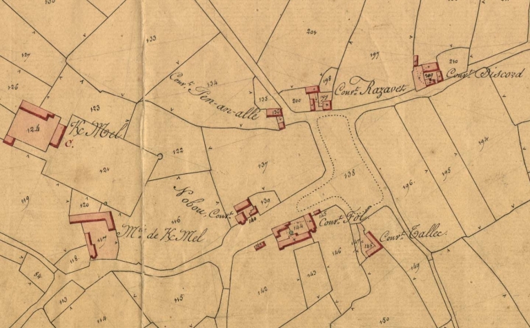 Ancienne ferme dont les bâtiments sont édifiés en moellons de granite et schiste. Elle présente un logis de type ternaire à cinq travées aspecté au sud.