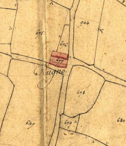 Maison haute de plan rectangulaire massé, probablement à pièce unique au rez-de-chaussée, et dépendance latérale légèrement plus basse construites en moellons de granite et schiste. Elle est couverte d'un toit à longs pans à pente raide et présente des pignons découverts à rampants à crossettes portant chacun une souche de cheminée. La fenêtre qui jouxte l'entrée (remaniée) est agrémentée d'un chanfrein.