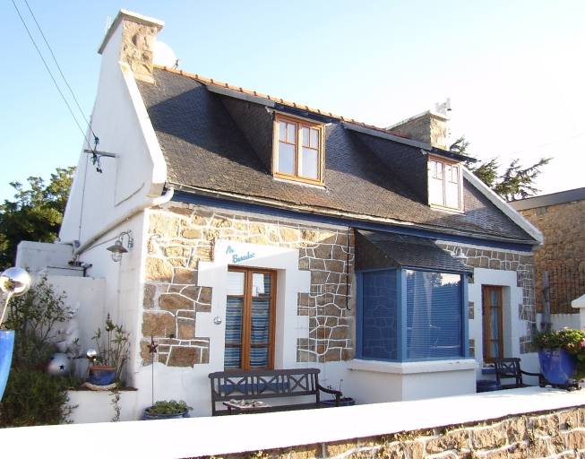 Maison de plan rectangulaire à deux pièces au rez-de-chaussée et à accès antérieur central construite en moellons de granite et schiste.