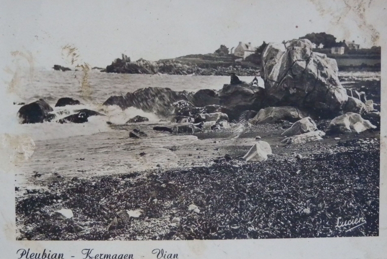 Le front de mer de Kermagen a été peu habité au cours du 19ème siècle. Le cadastre de 1829 montre deux grandes fermes à cour carrée et un habitat isolé, aujourd'hui rénové et très remanié (Kermage Huellan). Les pratiques culturales agricoles ont dominé le parcellaire littoral jusqu'à aujourd'hui, avec l'utilisation traditionnelle des amendements marins (goémon). L'urbanisation de la côte de Kermagen s'est développé progressivement au cours de la seconde moitié du 20ème siècle, avec l'arrivée du tourisme et l'implantation de nouvelles résidences, d'abord de façon diffuse sur le linéaire côtier puis de façon plus regroupée en retrait. Un gîte d'étape en bord de mer a remplacé récemment un commerce et propose un hébergement collectif. L'estran de Kermagen a été aménagé au cours du 4ème quart du 20ème siècle pour l'implantation de corps morts et de lignes de mouillage pour les bateaux des pêcheurs plaisanciers. Un rampe d'accès à la mer a été construite et des enrochements ont remplacé l'ancien cordon de galets sur la partie Nord du site.