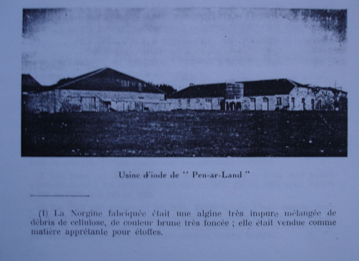 En 1896, la société des Halogènes, dont Monsieur Combes était le directeur, fait l'acquisition des premiers terrains au lieu dit Pen-ar-Land, à l'Armor-Pleubian. Monsieur James, industriel à l'usine de Penn Lann, découvre un procédé lui permettant d'extraire l'iode directement des algues sans dissoudre les sels minéraux qu'elles contiennent. En 1906, ont lieu les premières tentatives de fabrication d'alginates à Pleubian par la société Norgine, qui avait racheté l'ancienne entreprise.