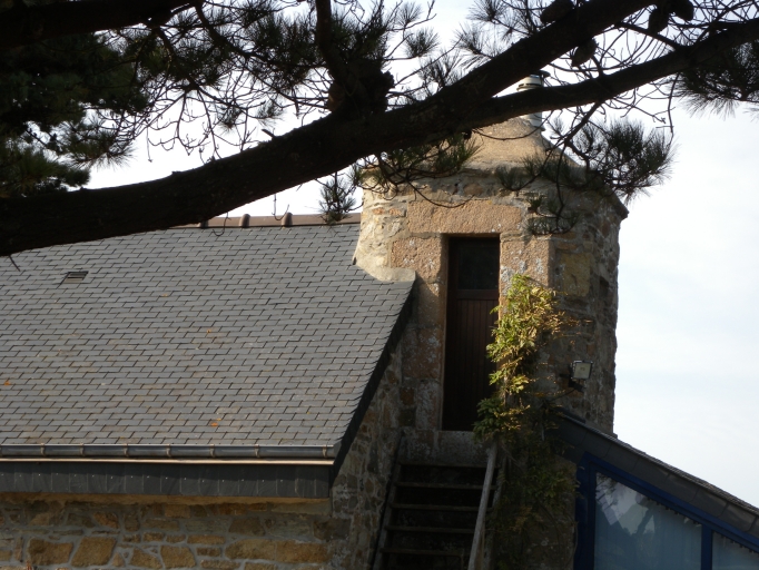 L'ancien corps de garde de Saint-Laurent est situé dans un petit bois de pins dominant la falaise. Il a été transformé en dépendance d'une habitation. L'édifice a un plan carré accoté d'une tourelle en hors-oeuvre au pignon Nord-Est, avec rez-de-chaussée et comble simple (tour hors-oeuvre : un étage carré). Il été construit en appareil moyen avec des moellons de granite et de schiste. Les baies sont encadrées de granite en pierre de taille. Le toit est à longs pans à pignon couvert, toit en pavillon. La tour est encore en bon état de conservation avec une couverture en ciment. Le bâtiment accolé à la tour a été transformé en maison d'habitation avec de nouvelles ouvertures et un toit couvert d'ardoises.