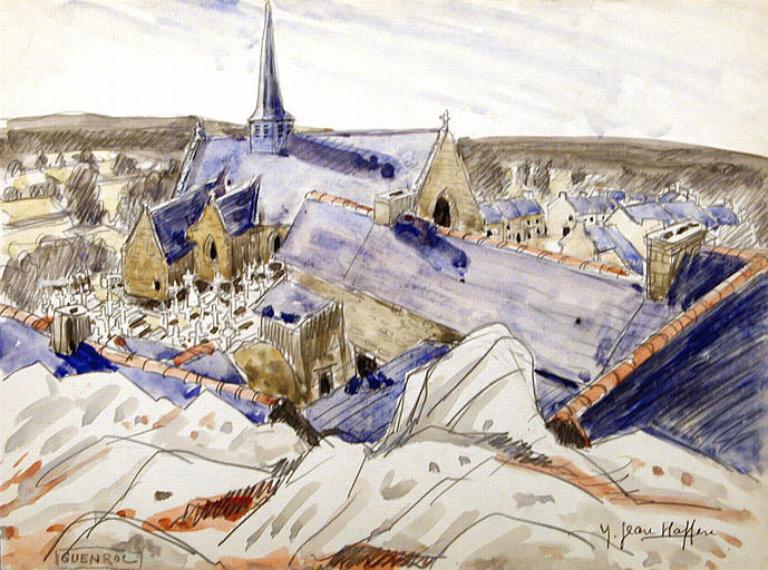 La paroisse est mentionnée en tant que telle en 1371 et appartenait dès 1447 au diocèse de Saint-Malo. L´église actuelle dédiée à Saint Gervais et à Saint Protais a été reconstruite dans la deuxième moitié du 15e siècle, entre 1458 et 1465. La date de 1465 est inscrite en lettres gothiques sur les chapiteaux du portail ouest. Sa construction hormis toutefois des différences d´appareillage est homogène. Elle conserve de cette période une belle fenêtre au réseau flamboyant dans le bras sud ainsi que les portails ouest et sud. L´ensemble à trois vaisseaux d´une grande sobriété possède peu de décor sculpté, hormis la gargouille de l´ancien porche sud. Le chœur a été reconstruit au 18e siècle sans rupture stylistique. Une pierre datée de 1773 a été vue au sommet de l´arcade sud du chœur. La toiture et le clocher ont été également refaits en 1895 par Marie Pellan, couvreur à la Ville Auray à Guenroc. L´environnement actuel de l´église résulte des modifications de 1908. Plusieurs autres restaurations et interventions ont eu lieu dans le courant du 20e siècle : la chapelle sud a été restaurée en 1938 et la niche du chœur, à jour céleste, construite en 1869 a été supprimée en 1973.