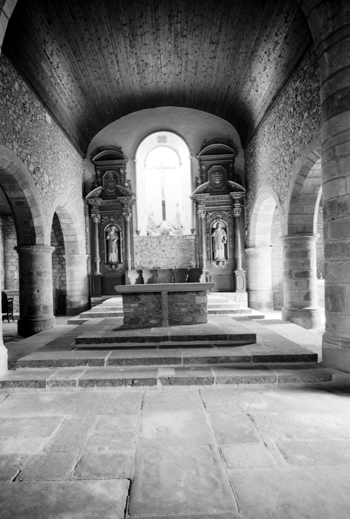 Le plan et l’aspect général de l’église ont peu évolué dans le temps. D'une grande sobriété, elle est cependant ambitieuse dans son programme puisqu'elle possède trois vaisseaux dès le 15e siècle. Elle se distingue également par une mise en oeuvre de qualité en pierre de taille de granite. Le portail ouest se différencie du portail sud par son décor sculpté, l’inscription qui donne la date de 1465 s’inscrit dans un bandeau horizontal interrompu qui reprend les formes anciennes des chapiteaux ouvragés. La nef conserve ses arcades gothiques aux nervures pénétrantes. Une restauration de la deuxième moitié du 20e siècle a supprimé les anciens enduits colorés (des traces d’ocre rouge sont perceptibles à l’emplacement de l’ancienne chaire à prêcher) au profit de maçonneries en pierres apparentes jointoyées au ciment. Ces restaurations tardives sont préjudiciables aujourd’hui à la conservation de l’édifice comme en témoigne la présence de salpêtre sur les murs.Cette église mériterait une protection au titre des Monuments Historiques.