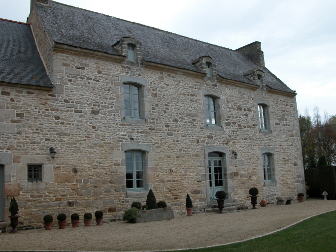 Corps principal du logis de type ternaire accolé d'une aile plus basse de dépendances. Présence de nombreux remplois dans la maçonnerie. Façades sud en moellons tandis que les façades nord et les pignons sont en terre. Le gros oeuvre du logis était recouvert à l'origine d'un enduit.