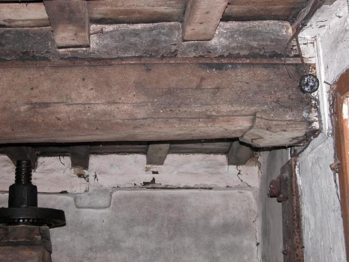 La chambre de l'étage possède une carrée de bois. Son aménagement intérieur est plus soigné. la pièce a conservé son enduit de chaux. Les peintures basses formaient une plinthe colorée d'ocre rouge. le manteau de la cheminée est encore peint.