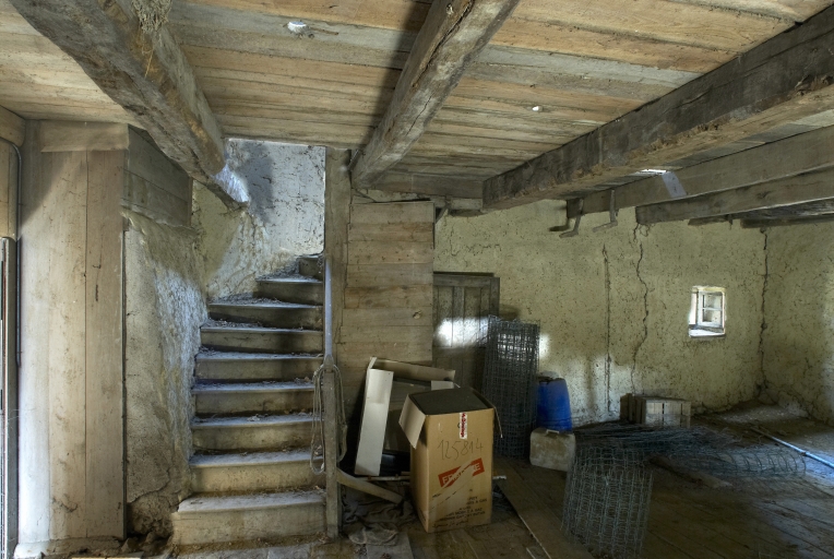 Ancienne maison de la première moitié du 17e siècle à trois pièces au sol, dont deux sont à feu. La pièce centrale servant de salle est pourvue d´un grand vaisselier, d´une armoire murale et d´une porte de communication avec l´étable (?) à l´ouest. L´escalier de cette salle conduit à un grenier qui mène à une chambre haute située au-dessus de l´étable. L´ensemble a été remonté en partie en terre vraisemblablement en 1844. L´escalier de la pièce centrale, l´armoire murale à quatre vantaux et sans doute aussi la chambre haute remontent à cette période. Le linteau de la fenêtre de la salle, sculpté d´un calice, indiquerait, à l´origine, l´habitation d´un prêtre.