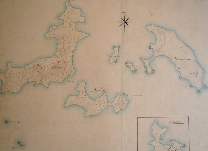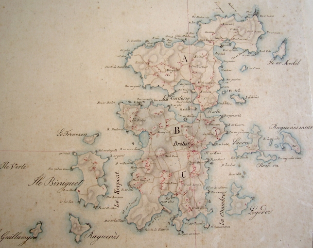 L'île de Bréhat est, plus exactement, un archipel d'une superficie de 310 hectares. Elle est constituée, d'une part, de deux îles principales, l'île sud et l'île nord, reliées toutes deux depuis la fin du 17ème siècle par une digue connue sous le nom de pont Vauban [fig. 19], et, d'autre part, d'une vingtaine d'îles et d'îlots, dont les principaux sont l'île Logodec, l'île Raguénès-Meur, l'île Lavrec et l'île du Morbil à l'est [fig. 20] et l'île Raguénès, l'île Verte, l'île Beniguet et l'île Crouézen à l'ouest [fig. 21].