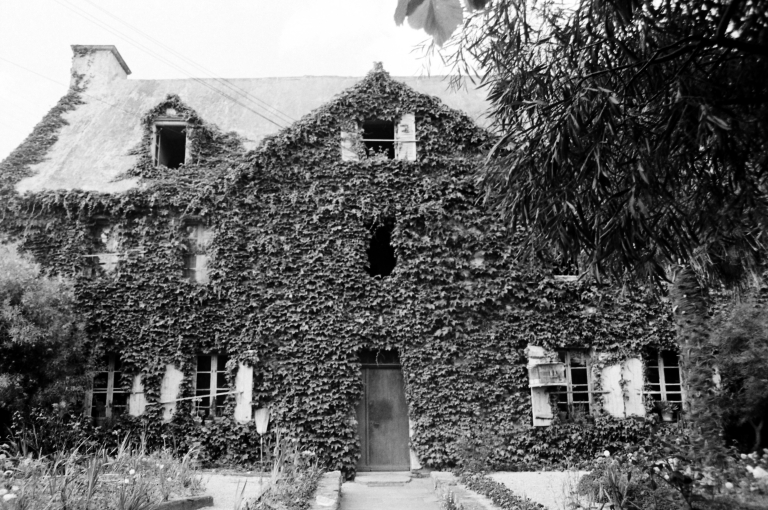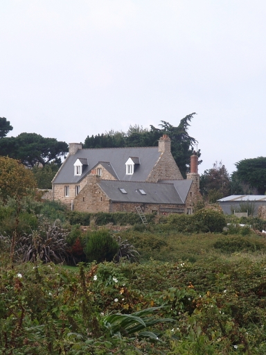 Maison de type ternaire à cour fermée, dépendances en retour d'équerre et mur de clôture chaperonné construits en moellons de granite. Elle est couverte d'un toit à longs pans et pignons découverts à rampants à crossettes. Chaque souche de cheminée est agrémentée d'une corniche. La façade antérieure sur cour est rythmée par cinq travées de baies régulières et est animée par un large fronton-pignon axial. Un corps central en appentis, à l'état de vestiges, est greffé sur la façade postérieure. Le mur de clôture édifié à l'aplomb de la rue au sud est ouvert d'une porte placée au droit de l'entrée.