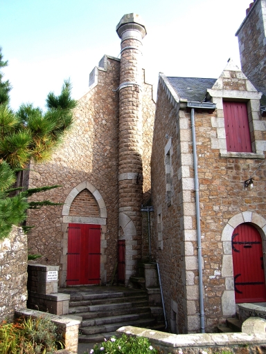 Maison de villégiature à deux corps en équerre édifiée en granite. Le corps de bâtiment de droite, flanqué d'un corps secondaire recevant l'entrée en plein-cintre, est composé d'un sous-sol, d'un rez-de-chaussée surélevé, d'un étage en surcroît et d'un étage de comble. Il est couvert d'un toit à longs pans et pignons découverts à rampants à crossettes. Les pièces du rez-de-chaussée sont éclairées à l'ouest par des baies jumelées couvertes chacune d'un linteau délardé en segment, celle de l'étage en surcroît par des lucarnes-pignon à crossettes (style régionaliste). Le corps de bâtiment de gauche, édifié en moellons de granite polygonaux, est animé par un conduit circulaire hors-oeuvre montant de fond et dépassant largement le faîte du toit. Edifié en moellons de granite rose équarris, ce conduit est ouvert d'une porte et est sommé d'une souche octogonale.