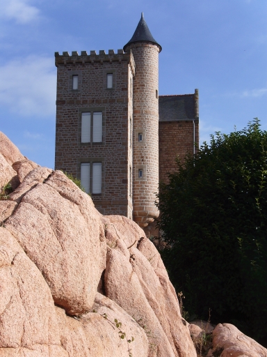 Maison de villégiature avec vue sur mer construite en moellons de granite rose équarris. Composée de trois corps de bâtiment de hauteur différente, elle est animée par une haute tour circulaire demi-hors-oeuvre dans l'angle en encorbellement coiffée d'un toit conique. Elle comprend un bâtiment principal à deux étages carrés et à mur-pignon en façade couvert d'un toit à longs pans et pignons découverts à rampants à crossettes. Ce bâtiment est flanqué de chaque côté d'un corps de bâtiment de plan carré massé couvert d'une toiture-terrasse sommée de mâchicoulis décoratifs. Le bâtiment de gauche, situé sur l'angle postérieur, est composée de trois étages carrés. Le bâtiment de droite, plus bas, est agrémenté d'un bow-window à balcon crénelé sur la façade principale. Un bandeau de granite règne sur chaque façade.