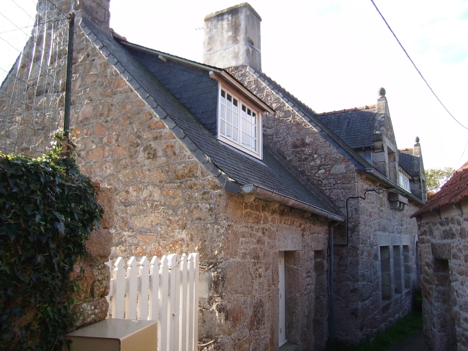 Maison de plan rectangulaire, à deux pièces au rez-de-chaussée et à accès antérieur central, et logement latéral bas édifiés en moellons de granite. Elle est ouverte d'une porte en plein-cintre agrémentée d'une archivolte à retours à usage de larmier et présente des lucarnes-pignon à crossettes sommées d'une boule (style régionaliste).
