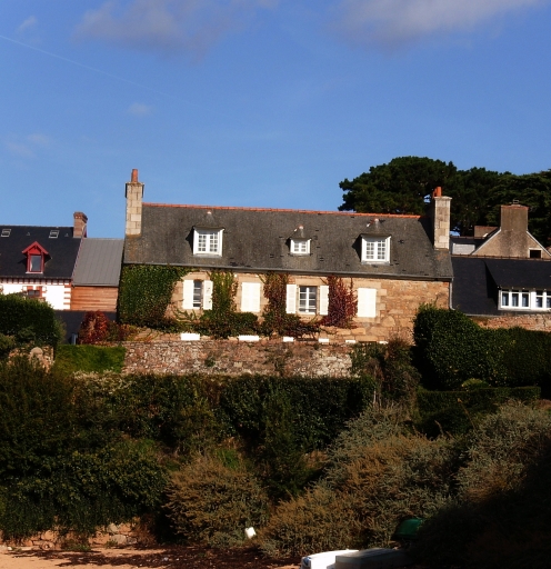 Probable maison de type ternaire, avec travée antérieure supplémentaire et vue sur mer, et mur de clôture chaperonné construits en moellons de granite. Elle est composée d'un rez-de-chaussée à deux pièces, d'un étage carré et d'un étage de comble éclairé par des lucarnes à croupe ronde débordante (rapportées). Les souches de cheminée à corniche sont édifiées en pierre de taille (réfection).