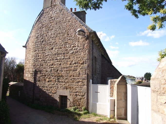 Maison de type ternaire et mur de clôture chaperonné construits en moellons de granite. Elle est prolongée à droite par une travée rapportée.