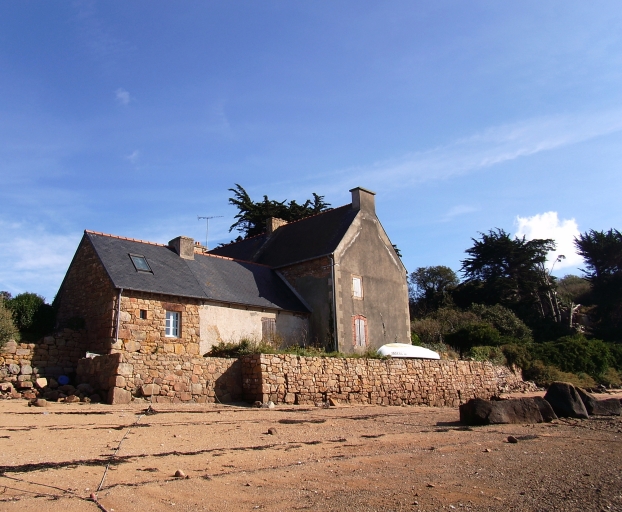 Maison remaniée édifiée en moellons de granite. Elle est constituée de deux logis mitoyens à un étage carré et de même hauteur. Chaque logis présente deux travées de baies en façade antérieure, la travée de droite accueillant l'entrée. Des traces de reprise de la maçonnerie sont visibles sur le mur antérieur. Des lucarnes à croupe ont été rapportées sur le versant antérieur du toit. Le logis de droite présente des rampants à crossettes. Un corps de bâtiment plus bas et divisé par un mur de refend portant souche de cheminée est greffé sur la façade postérieure du logis de gauche. A noter la présence d'un mur de soutènement et d'une rampe d'accès en maçonnerie de granite desservant la grève.